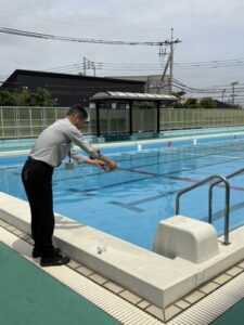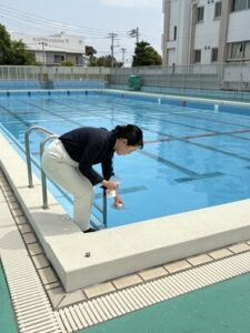 今年も水の事故がなく、子どもたちが安心してプールの授業に取り組めるよう、PTAと教職員が心を合わせて祈りを捧げました。