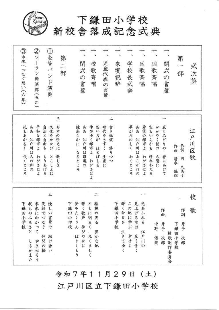 • 名称:下鎌田小学校 新校舎落成記念式典