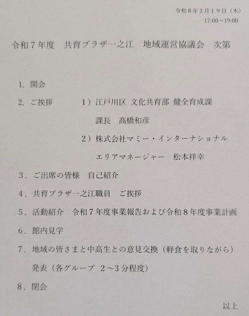 - 名称:令和7年度 共育プラザ一之江 地域運営協議会